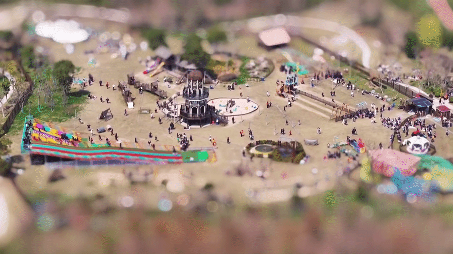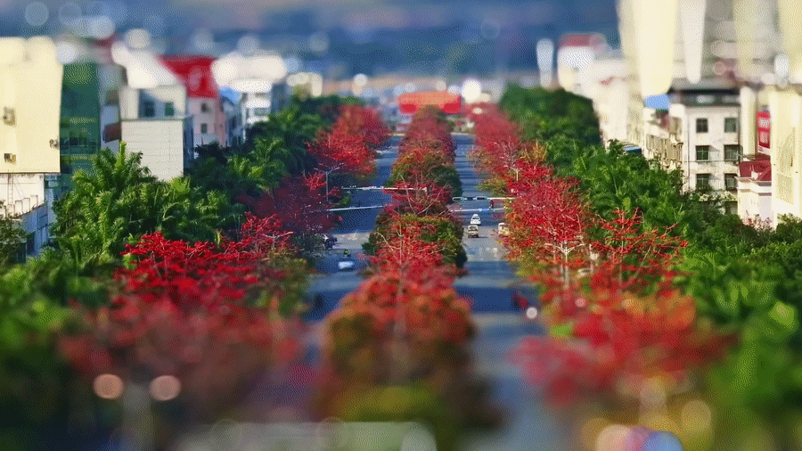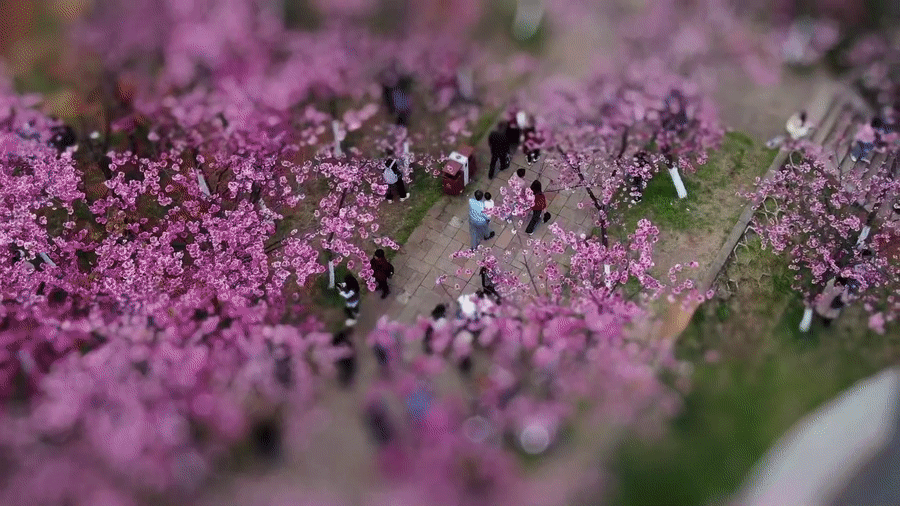 移軸鏡頭下,花間穿梭流連的游客與美麗的鮮花共同構成一幅生動的春日圖景。