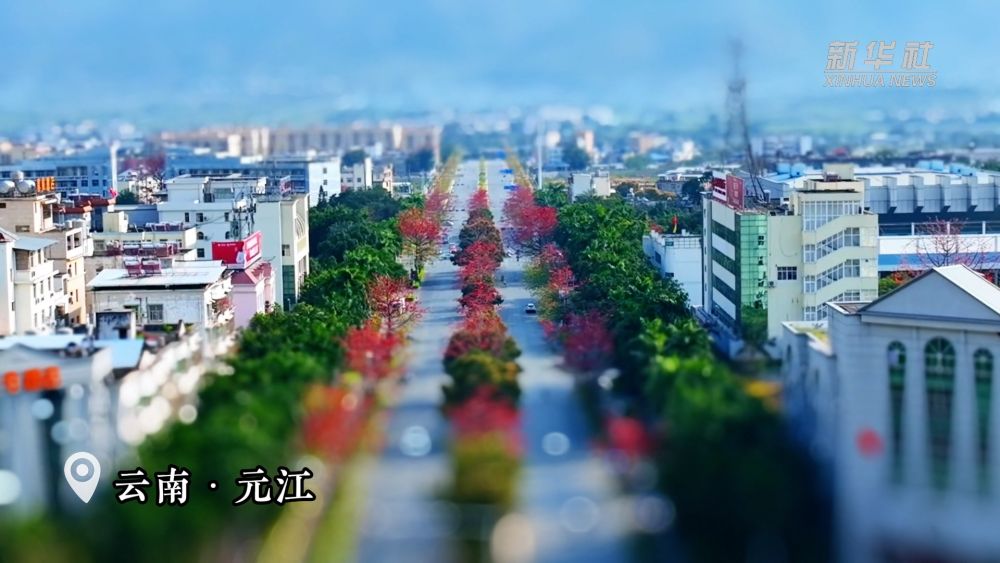 元江攀枝花正值盛花期,火紅的花朵綴滿枝頭,如一團團燃燒的火苗。