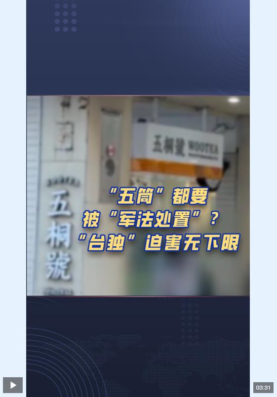 最近一段時間,民進黨當局打壓迫害島內(nèi)支持兩岸和平發(fā)展人士的行為,已經(jīng)到了喪心病狂的地步,甚至有家奶茶店因為叫“五桐號”,而被綠營抵制說是在諧音“武統(tǒng)好”,難怪有人諷刺:如今的臺灣,打麻將說“五筒”都會被“軍法處置”。有島內(nèi)輿論指出,賴清德違逆民意拋出“17項策略”,是“戒嚴再起、‘臺獨’叫陣”,是“綠色恐怖執(zhí)政”。臺灣社會各界也紛紛表達不滿: