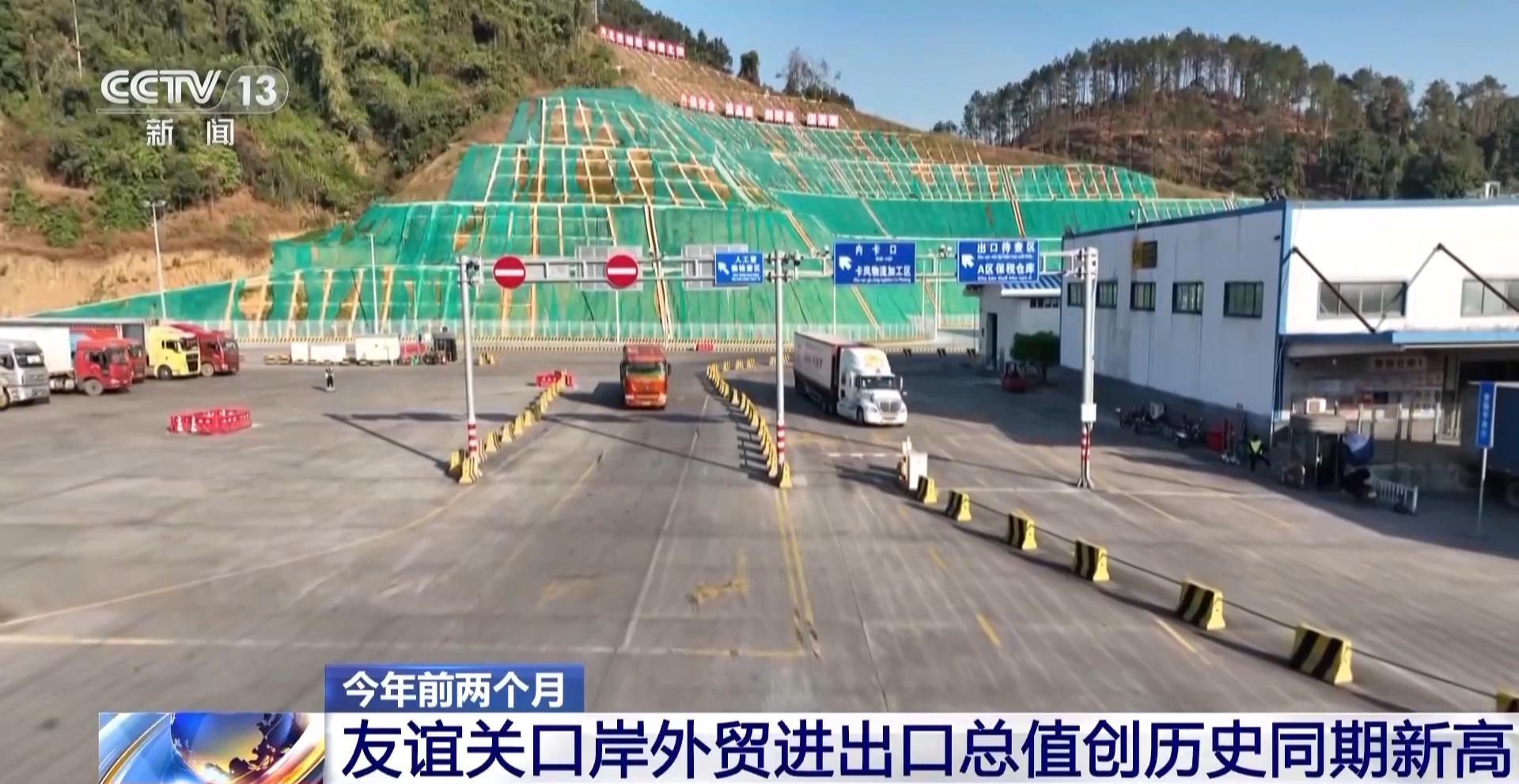 據(jù)友誼關(guān)海關(guān)統(tǒng)計(jì),今年前兩個(gè)月,經(jīng)友誼關(guān)口岸進(jìn)出口貨值728.9億元,同比增長(zhǎng)10.9%,創(chuàng)歷史新高;進(jìn)出口貨運(yùn)量85萬(wàn)噸,同比增長(zhǎng)38.3%。進(jìn)出境車輛11.4萬(wàn)輛,同比增長(zhǎng)10.2%。