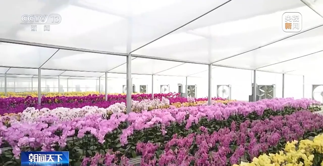 工作人員告訴記者,蝴蝶蘭大世界安裝了200多個智能傳感器,采用5G物聯(lián)網(wǎng)技術(shù),精準調(diào)控溫度、濕度、光照、通風(fēng)等生長因素,可以實現(xiàn)“定時開花”。
