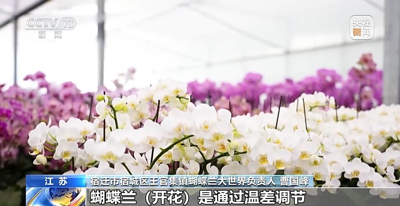 宿遷市宿城區(qū)王官集鎮(zhèn)蝴蝶蘭大世界負責(zé)人 曹國峰:其實蝴蝶蘭的自然花期應(yīng)該是農(nóng)歷年開始一直到“五一”,這是自然狀態(tài)。現(xiàn)在我們通過技術(shù)干預(yù),想哪一天開就哪一天開。蝴蝶蘭開花是通過溫差調(diào)節(jié),這個時候我們就要用空調(diào),一些恒溫設(shè)備以及除濕設(shè)備進行恒溫控制。