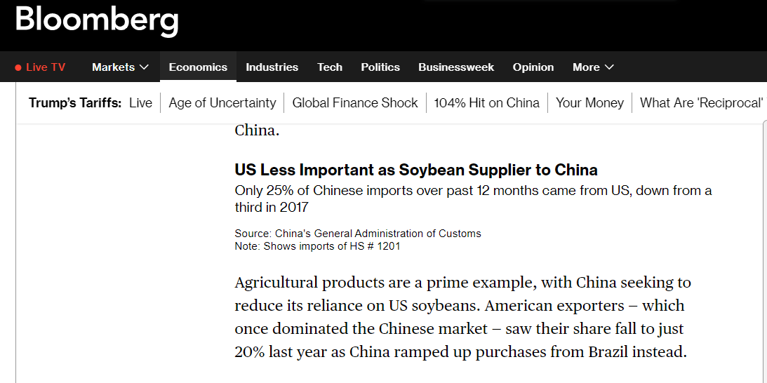 報道稱,美國作為中國大豆供應(yīng)商的重要性下降進一步凸顯了中國的戰(zhàn)略調(diào)整。據(jù)中國海關(guān)總署數(shù)據(jù),過去12個月,中國僅25%的進口大豆來自美國,美國在中國大豆進口市場份額進一步收縮。這為北京爭取更多時間,直至雙方重回談判桌。