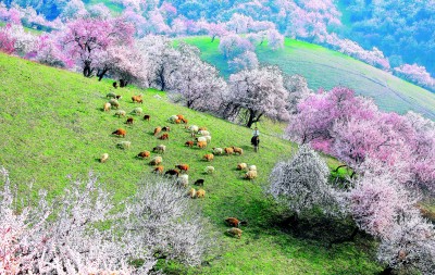 這是大自然獨(dú)有的饋贈(zèng)。這片廣袤的土地上,孕育著壯觀的杏樹群落,更有14世紀(jì)遺留下來的原始野杏林。每年3月下旬,從吐魯番盆地到帕米爾高原再到伊犁河谷,杏花次第開放。它耐旱、抗寒、不懼貧瘠,以頑強(qiáng)的生命力將根系深深扎進(jìn)大地,綻放出明艷繁茂、縱情熱烈的花朵。