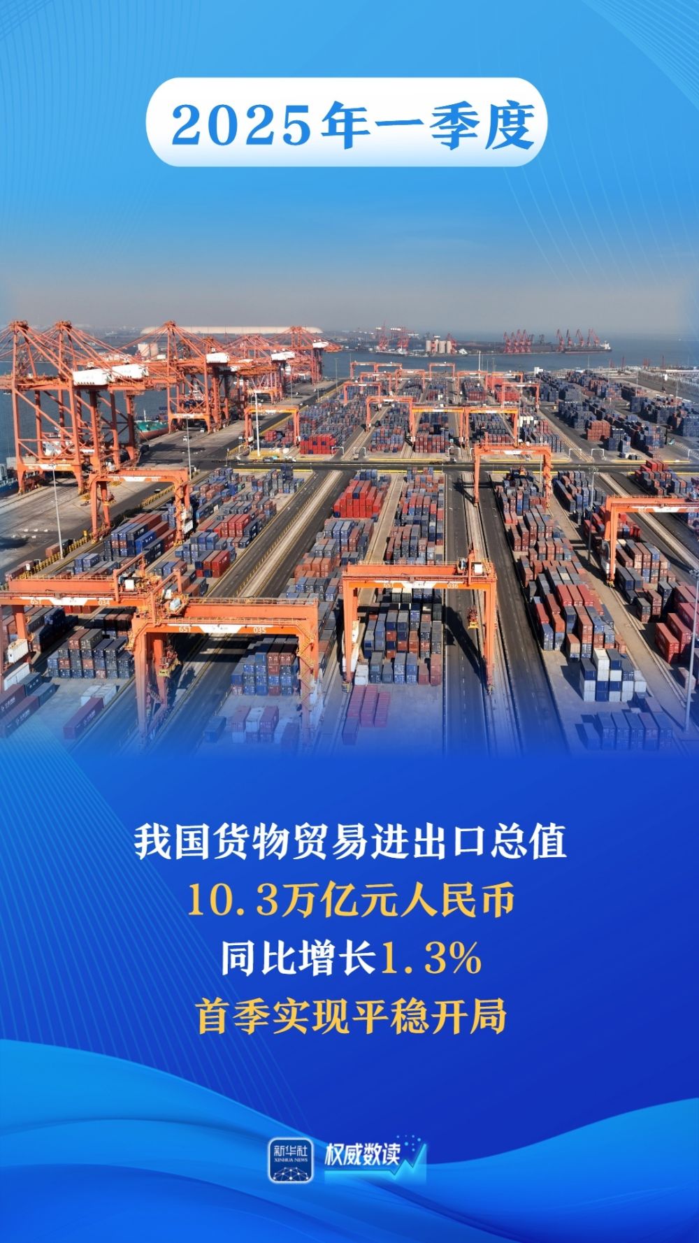 國務院新聞辦14日舉行新聞發(fā)布會,介紹2025年一季度進出口情況。今年一季度,我國貨物貿易進出口10.3萬億元,同比增長1.3%。在外部困難挑戰(zhàn)增多的情況下,各地各部門和廣大外貿經營主體積極應對,推動一季度我國外貿進出口實現平穩(wěn)開局。