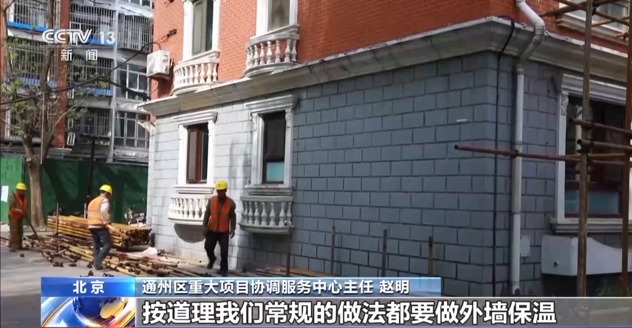 北京市通州區(qū)重大項目協(xié)調(diào)服務(wù)中心主任 趙明:前面那棟樓外墻在改造,按道理,我們常規(guī)的做法都要做外墻保溫。這兩棟樓,老百姓認為我的外墻瓷磚有保溫,我就不需要再做這事了。