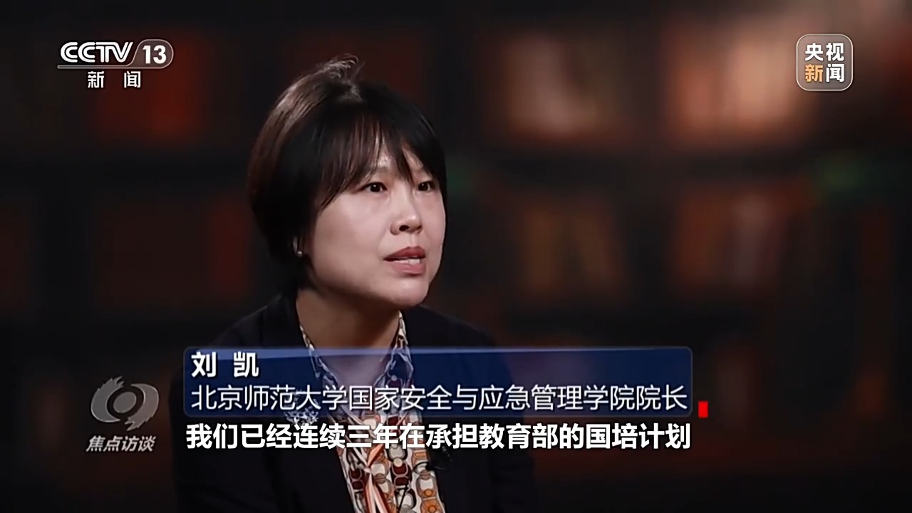 北京師范大學(xué)國(guó)家安全與應(yīng)急管理學(xué)院院長(zhǎng) 劉凱:我們已經(jīng)連續(xù)三年承擔(dān)教育部的國(guó)培計(jì)劃。國(guó)培計(jì)劃就是給全國(guó)的中小學(xué)教師講授國(guó)家安全相關(guān)的基本知識(shí),等他們回到自己的學(xué)校,在他們?nèi)粘J谡n的時(shí)候,就能夠把國(guó)家安全的知識(shí)融入數(shù)學(xué)課程、物理課程,包括其他一些課程中,這是一個(gè)非常可持續(xù)的路徑。