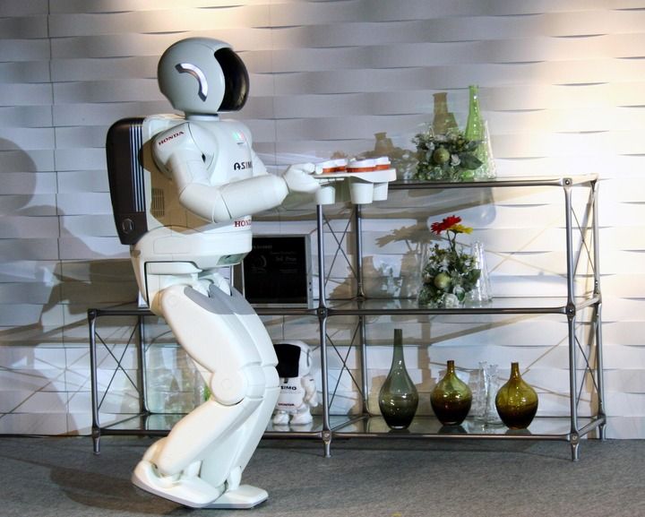 本世紀(jì)初,日本本田公司發(fā)布一款酷似太空宇航員的人形機(jī)器人ASIMO(阿西莫),能上下樓梯,聽懂語音指令。2013年美國波士頓動力公司發(fā)布的人形機(jī)器人Atlas在跑步機(jī)上健步如飛,還能跳躍、旋轉(zhuǎn)、翻滾等,它為災(zāi)難現(xiàn)場而設(shè)計,目標(biāo)是在化學(xué)泄漏、建筑倒塌等危險區(qū)域替代人類完成開關(guān)閥門、搬運(yùn)等任務(wù)。
