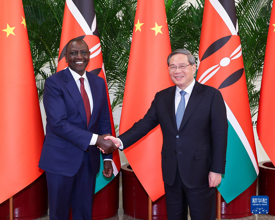 新華社北京4月23日電 國務(wù)院總理李強4月23日下午在北京人民大會堂會見來華進行國事訪問的肯尼亞總統(tǒng)魯托。