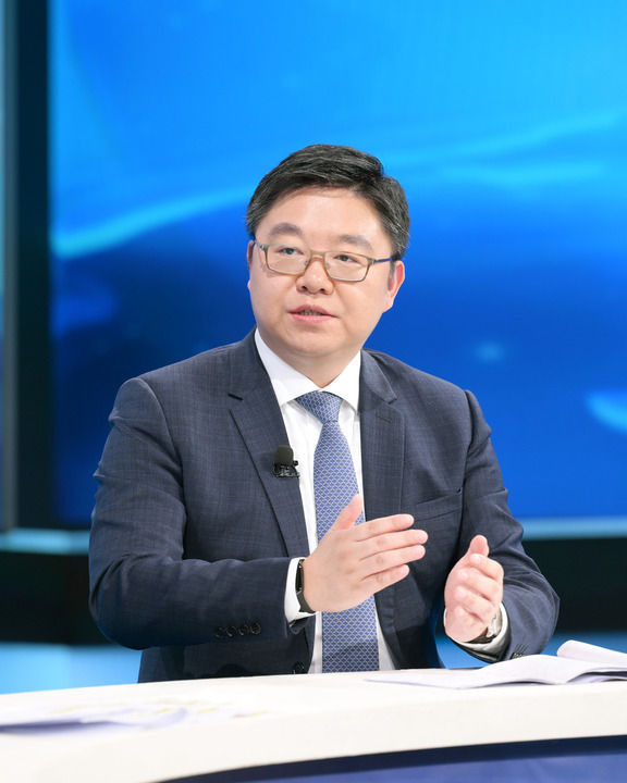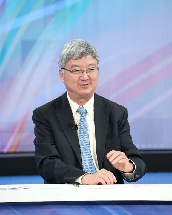 中國(guó)國(guó)際經(jīng)濟(jì)交流中心資深專家委員朱民在第十五期“中國(guó)經(jīng)濟(jì)圓桌會(huì)”錄制現(xiàn)場(chǎng)發(fā)言。新華社記者 李賀 攝
