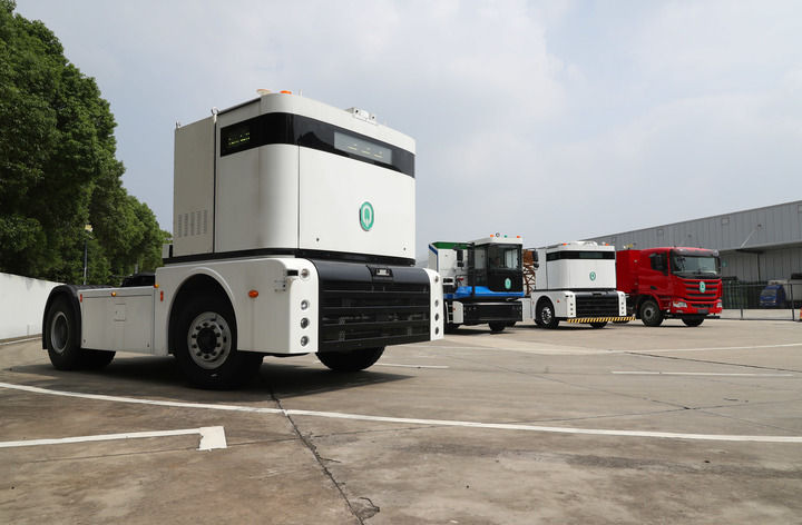 2023年9月26日,一輛西井科技的無(wú)人駕駛重卡Q-Truck(前)在位于上海的無(wú)人駕駛商用車聯(lián)合實(shí)驗(yàn)室場(chǎng)地上進(jìn)行動(dòng)態(tài)測(cè)試。新華社記者 方喆 攝