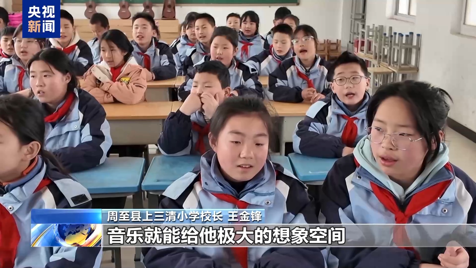 周至縣上三清小學(xué)校長 王金鋒:農(nóng)村學(xué)校大多是留守兒童,爸爸媽媽都在外面打工,爺爺奶奶在家里看護(hù)這些孩子,隔代教育。音樂就能給他極大的想象空間還有發(fā)展空間。孩子們首先對自我有一個認(rèn)知、提升,他覺得自己可以很自然地站到大家面前去展示自己的才藝。