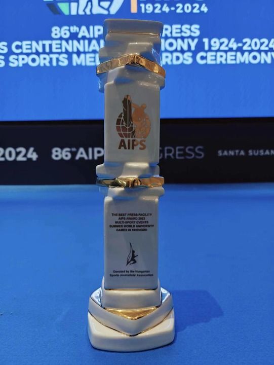 在2024年4月29日舉行的國際體育記者協(xié)會頒獎典禮上,成都大運會獲得2023年度綜合賽事最佳媒體設(shè)施服務獎。新華社發(fā)