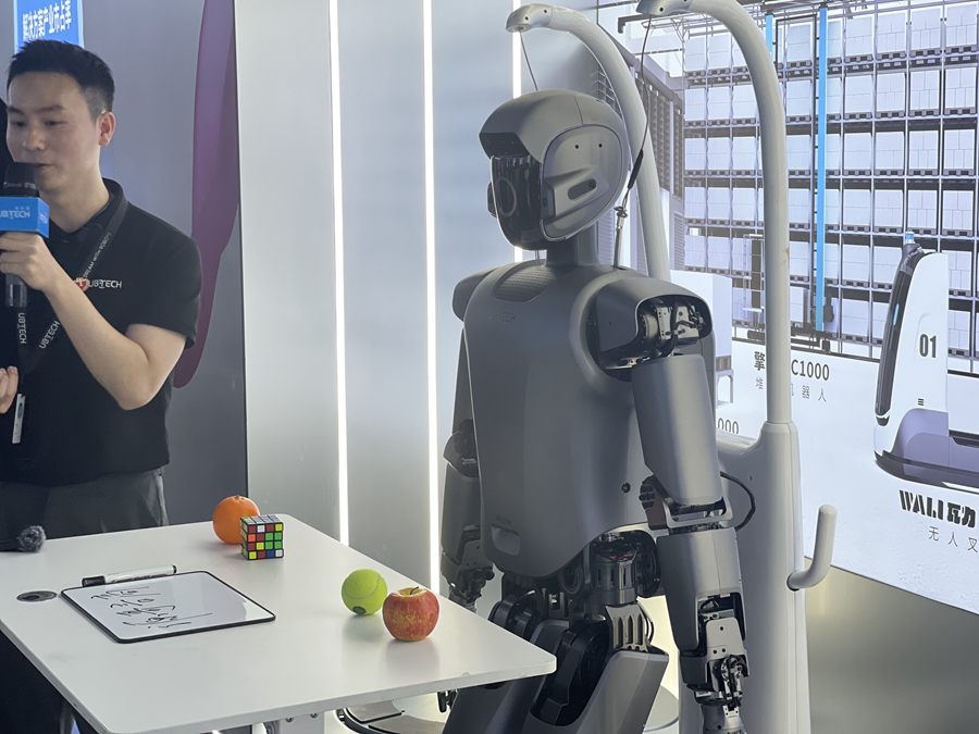 以優(yōu)必選為例,據(jù)工作人員介紹,企業(yè)部分產(chǎn)品線的產(chǎn)品迭代速率,能夠縮短到不足六個月。在展示區(qū)域,多個機器人秀起自己的“絕活”,有些可以彎腰拾取,端起15公斤的貨物穩(wěn)步前行;有些能夠識別簡單的線條手繪,并通過語言描述出來;有些能夠通過多項采集,模仿人類精確到每個指關(guān)節(jié)的動作。