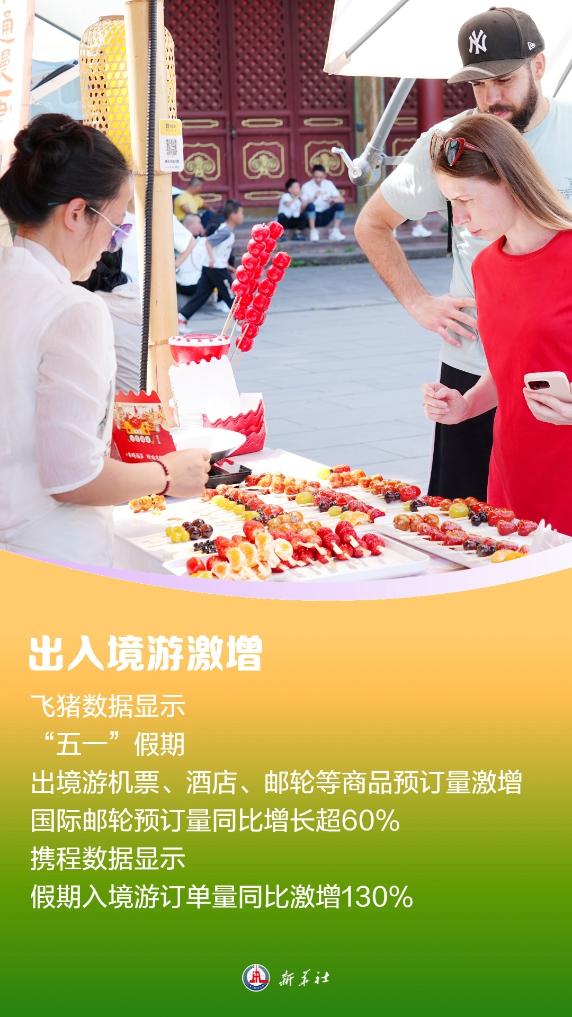 出境游、入境游市場持續(xù)升溫。飛豬數(shù)據(jù)顯示,“五一”假期,出境游機(jī)票、酒店、郵輪等商品預(yù)訂量激增,其中國際郵輪預(yù)訂量同比增長超60%。攜程數(shù)據(jù)顯示,今年“五一”假期期間,入境游訂單量同比激增130%。