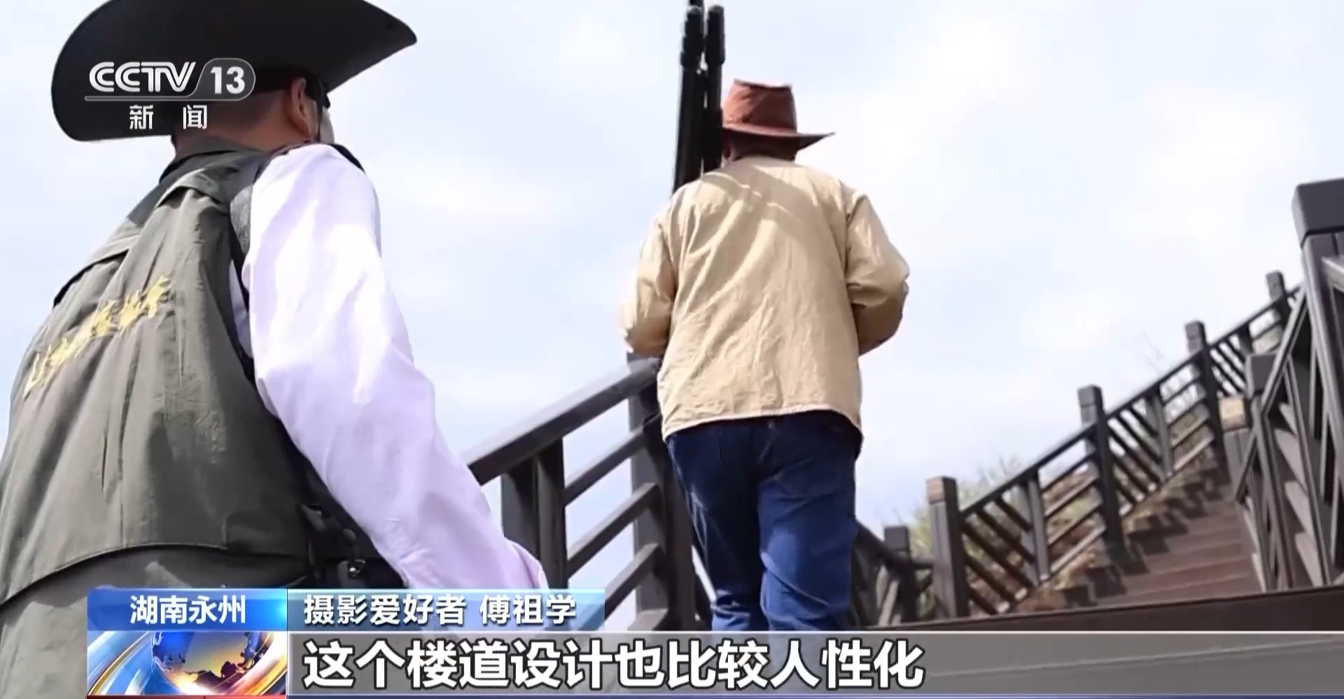 攝影愛(ài)好者 傅祖學(xué):我們?cè)谟^鳥(niǎo)之余,還可以順著樓道爬到山頂看風(fēng)景,這個(gè)樓道設(shè)計(jì)也比較人性化,每隔幾十米就有一個(gè)休憩的平臺(tái),爬累了就休息一會(huì)兒。