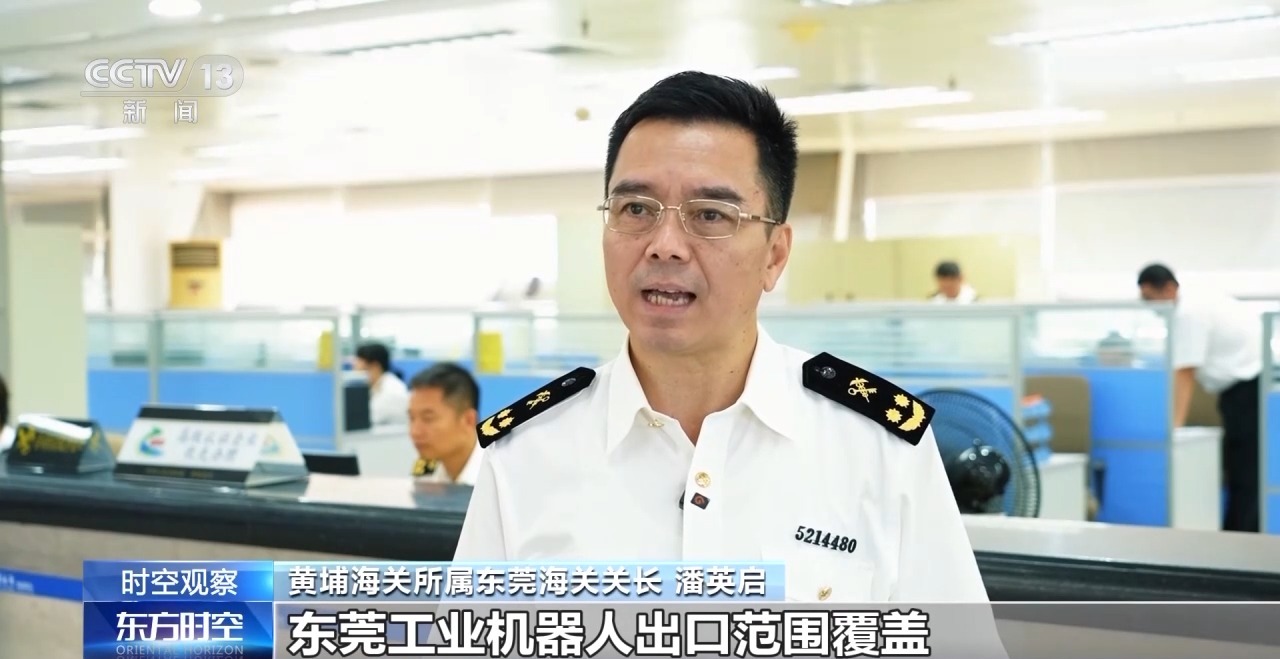 黃埔海關(guān)所屬東莞海關(guān)關(guān)長(zhǎng) 潘英啟:東莞工業(yè)機(jī)器人出口范圍覆蓋亞洲、歐洲、美洲等多個(gè)地區(qū),出口產(chǎn)品類型豐富多樣,涵蓋焊接機(jī)器人、搬運(yùn)機(jī)器人、裝配機(jī)器人等多種工業(yè)應(yīng)用場(chǎng)景的機(jī)器人。