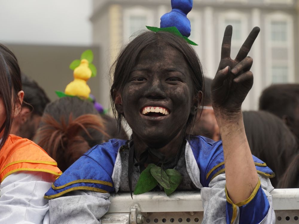 今年,墨江縣還把傳統(tǒng)民俗活動“抹黑臉”狂歡進(jìn)行了升級,將原本不易清洗的鍋底灰替換為以咖啡粉為主要原料的抹黑臉粉。