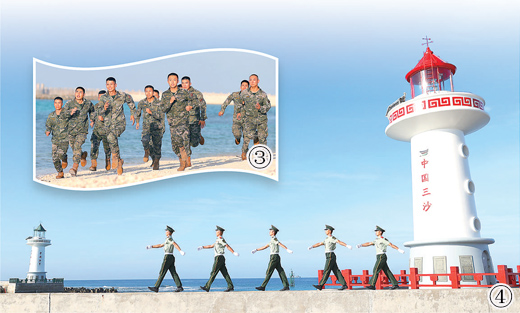 離開永興島前,我再次走過他們的戰(zhàn)位。巡邏的戰(zhàn)士在漫漫銀灘上留下堅定足跡,他們朝我揮揮手,臉上綻放出燦爛的笑容;站崗的戰(zhàn)士在哨位巋然佇立,目光炯炯、士氣昂揚,身影在斜陽下顯得格外高大。這群樸素的武警官兵們,用青春和熱血忠誠守護在海天之間,保衛(wèi)著身后的萬家燈火、國泰民安,他們的精神令人動容。
