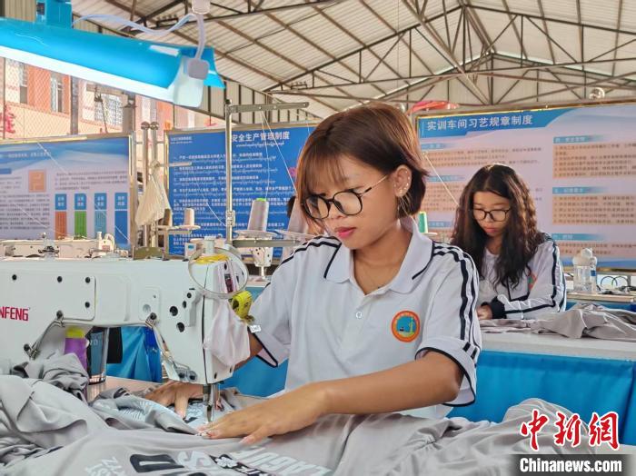 瑞麗市職業(yè)中學實訓車間內,緬甸學生蘇雪妮正在上課。李冰楠 攝