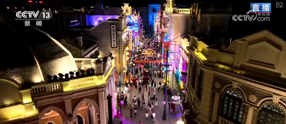 每到夜晚,“電影大道”街道兩旁霓虹燈裝點的老式招牌依次亮起,飯莊、百貨店、歌舞院,這些復(fù)古風(fēng)格的店鋪還原出老電影里的場景。摩肩接踵的游客穿行其間,仿佛走入了百年前的“老鄭州”。