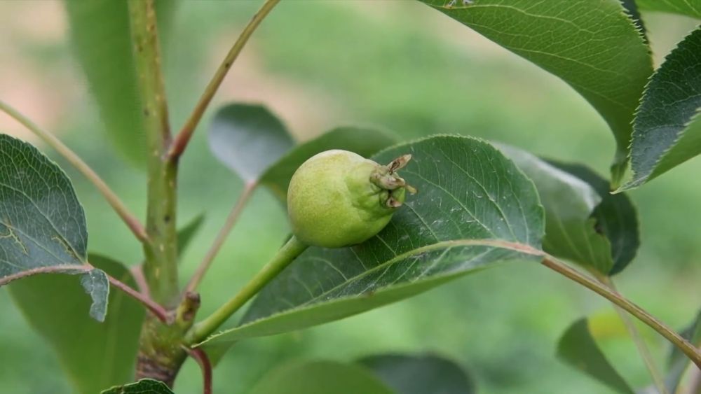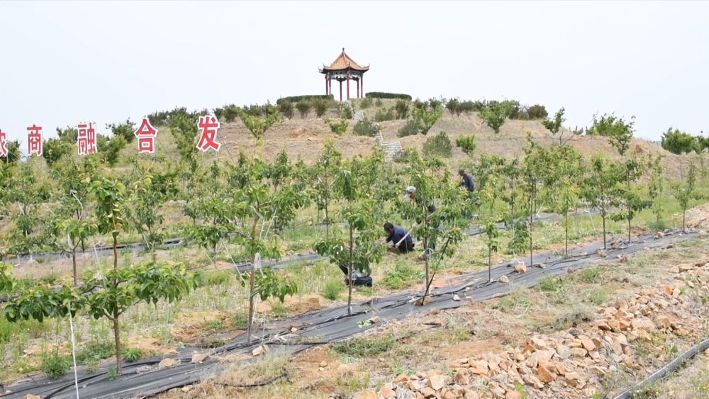 在淄博市沂源縣魯村鎮(zhèn)龍子峪村酥梨園,工作人員在進行夏季管護。幾年前這里還是一座荒山,2022年,沂源桃花島農業(yè)發(fā)展有限公司流轉了這片山地,改造為酥梨園。