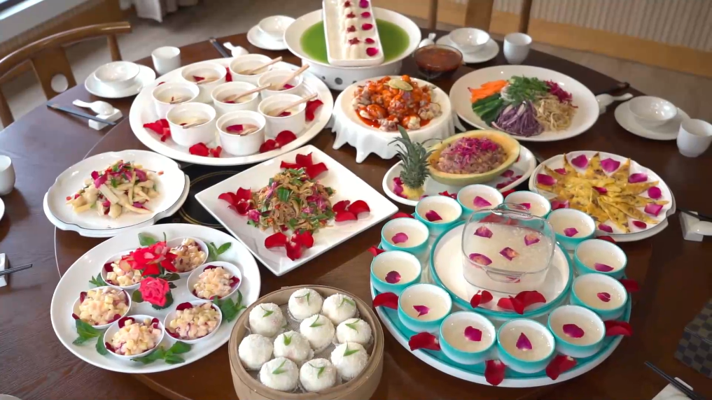 “今天很榮幸能吃到一桌都是用玫瑰花制作的菜肴,特別浪漫。”游客陳淑華說,“每一道菜都非常精致,真的是一種‘舌尖上的享受’?!?/p>