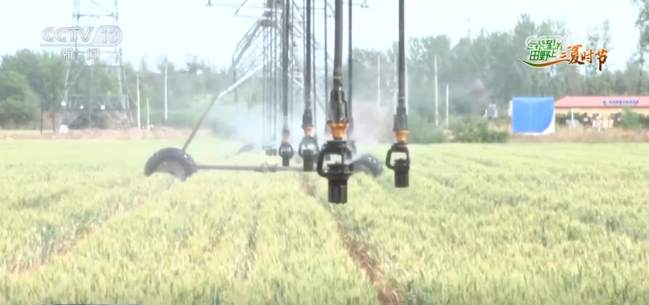 在侯馬市,大型自走式噴灌機沿著軌道勻速前行,精準噴灑水霧,高效應對干熱風。
