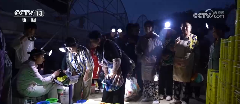 夜幕降臨,趙棚鎮(zhèn)團(tuán)山村的基質(zhì)藍(lán)莓基地卻一片繁忙。記者在基地大棚看到,工人們借著燈光熟練地采摘、打包新鮮藍(lán)莓。