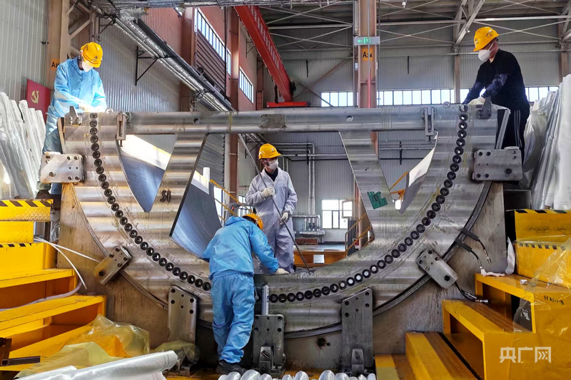 不遠(yuǎn)處的中水四局(塔城)能源裝備有限公司,正開足馬力生產(chǎn)6米直徑的分片式塔筒。“每段塔筒焊接誤差必須控制在毫米級?!笨偣こ處熗粑迨慕榻B,企業(yè)年產(chǎn)400套塔筒的生產(chǎn)線已滿負(fù)荷運轉(zhuǎn),去年9月到今年四月有24套出口哈薩克斯坦,今年已承接100多套訂單。