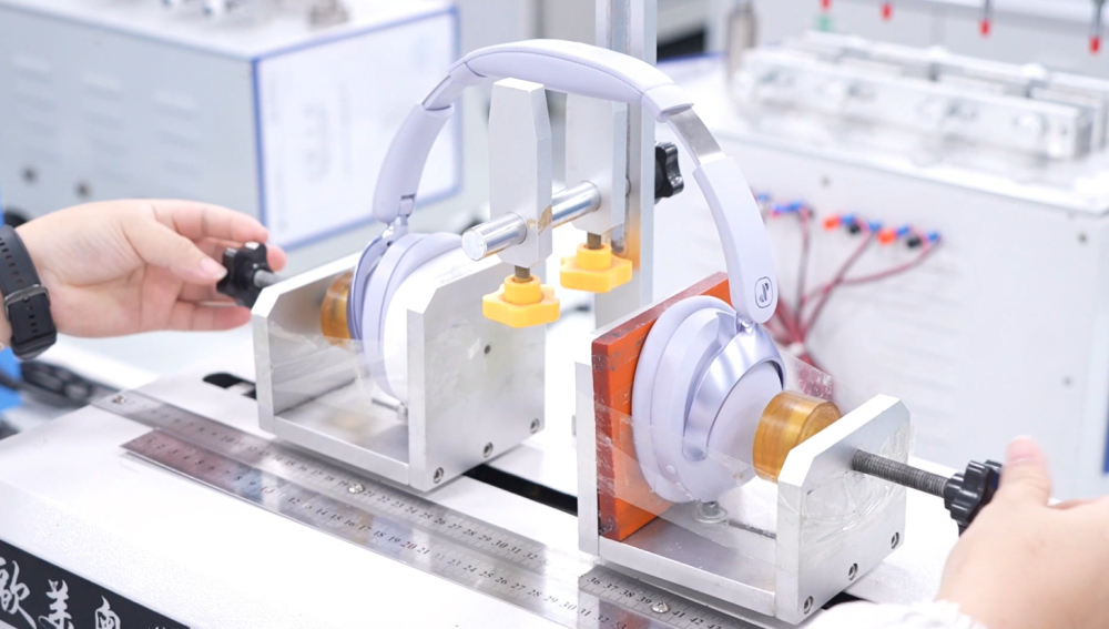 廣東眷蜀科技有限公司車間內(nèi),員工對(duì)耳機(jī)產(chǎn)品進(jìn)行技術(shù)檢測。受訪者供圖