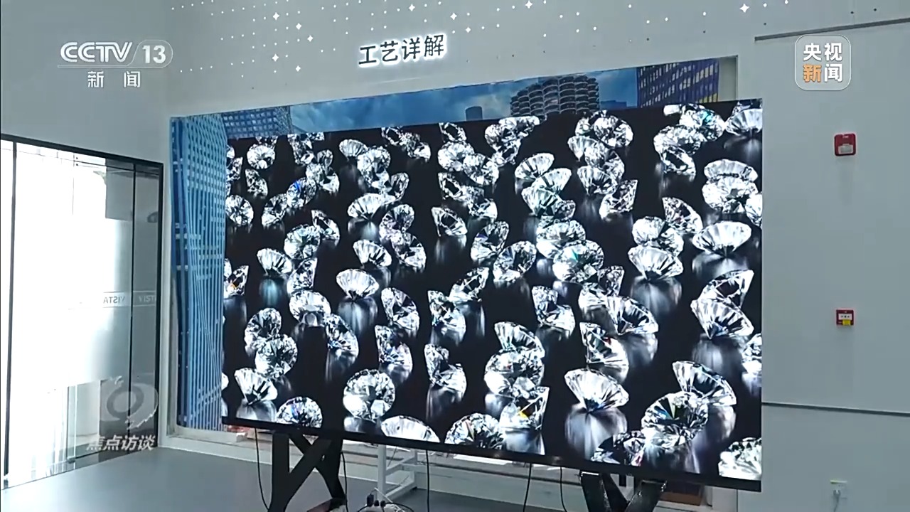 維信諾Micro-LED技術(shù)負(fù)責(zé)人、成都辰顯光電有限公司總經(jīng)理 黃秀頎:這款產(chǎn)品歷經(jīng)了8年的研發(fā)時(shí)間,到現(xiàn)在推出全球最新的135英寸TFT基Micro-LED(顯示屏)。它的特點(diǎn),亮度非常高,而且色彩非常細(xì)膩,還原度很高。但是這塊屏是拼接出來(lái)的,上面總共有2400萬(wàn)顆LED發(fā)光點(diǎn),大的135英寸里面有200片屏,每個(gè)屏還要把它組裝成箱體,這里有25個(gè)箱體??梢愿鶕?jù)客戶的需求定制大小,只要把箱體拼上去就可以無(wú)限擴(kuò)展,現(xiàn)在拼縫控制的是幾十個(gè)微米量級(jí),大概就是頭發(fā)絲直徑的五分之一。