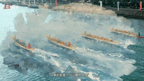 是在刻成龍形的獨木舟上奮楫爭先