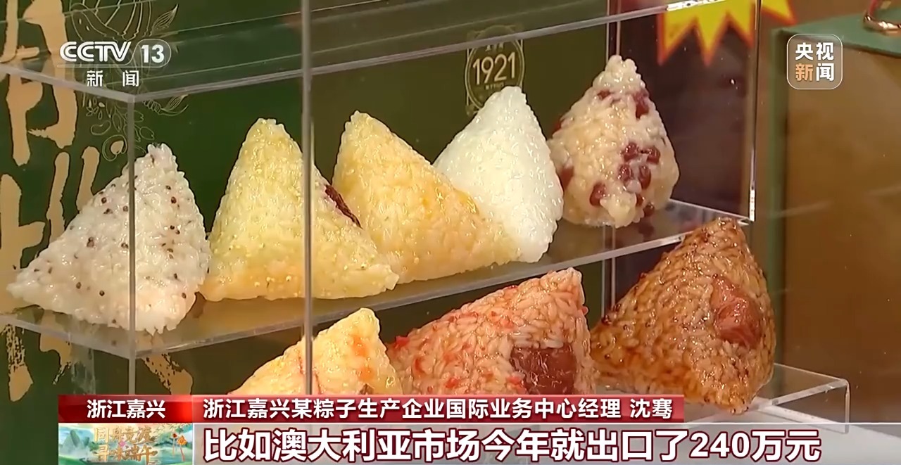 浙江嘉興某粽子生產(chǎn)企業(yè)國際業(yè)務(wù)中心經(jīng)理 沈騫:今年,我們開發(fā)了純植物餡料的素食粽子、低糖粽等細分品類,今年以來已經(jīng)累計出口了250余萬只粽子。東南亞是主要市場,我們還開拓了加拿大、澳大利亞、新西蘭等10多個國家和地區(qū),比如澳大利亞市場今年就出口了240萬元,增長比較明顯。