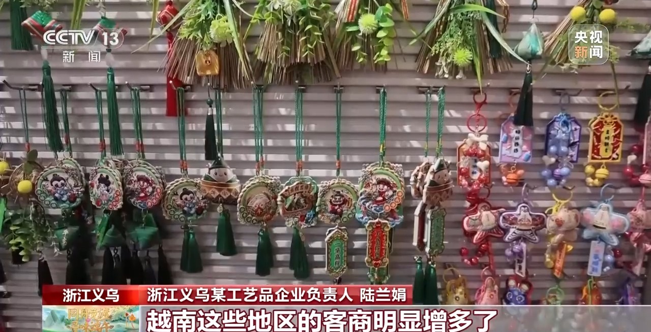 浙江義烏某工藝品企業(yè)負責(zé)人 陸蘭娟:以前香囊的消費群體以國內(nèi)為主,這兩年,越來越多的外國客商來咨詢。前年賣出了15萬個左右,去年訂單翻了一番,有30萬個。那今年的訂單也明顯超過了過去,尤其是新加坡、馬來西亞、越南這些地區(qū)的客商明顯增多。