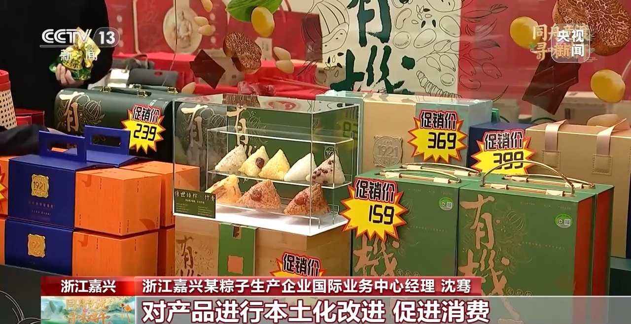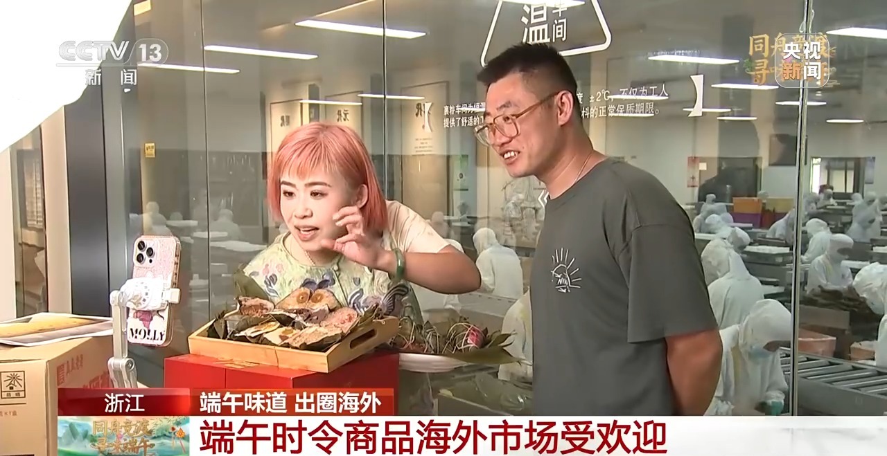 浙江嘉興某粽子生產(chǎn)企業(yè)國際業(yè)務(wù)中心經(jīng)理 沈騫:我們在直播中會展示粽子制作過程、食品溯源以及科普習(xí)俗,讓國外消費者了解粽子文化。我們還積極參加一些國內(nèi)外的展會,結(jié)合當(dāng)?shù)匚幕拖M習(xí)慣,對產(chǎn)品進行本土化改進,促進消費。今年,我們的粽子出口到了柬埔寨的商超和網(wǎng)購平臺,在韓國大棗粽和豆沙粽非常受歡迎。