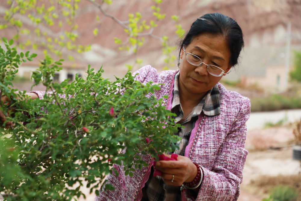 房前屋后、田間地頭的苦水玫瑰,早就嵌入了當(dāng)?shù)匕傩盏纳?。每年花開時節(jié),婦女們便會提籃挎篼、采摘花瓣,然后釀制成香甜可口的玫瑰醬,作為逢年過節(jié)蒸花卷、烙鍋盔的上好佐料。