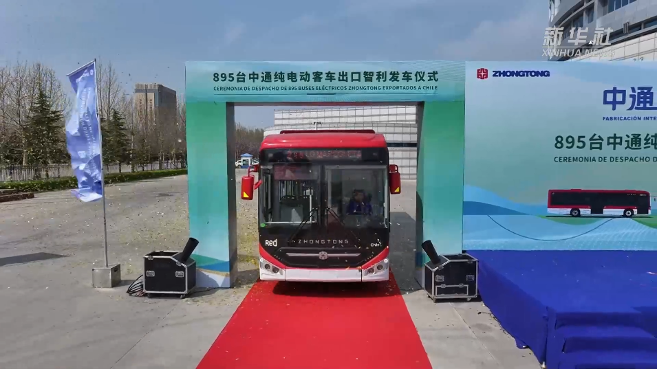 895臺(tái)中通純電動(dòng)客車(chē)出口智利發(fā)車(chē)儀式。新華社記者 朱曉光 攝