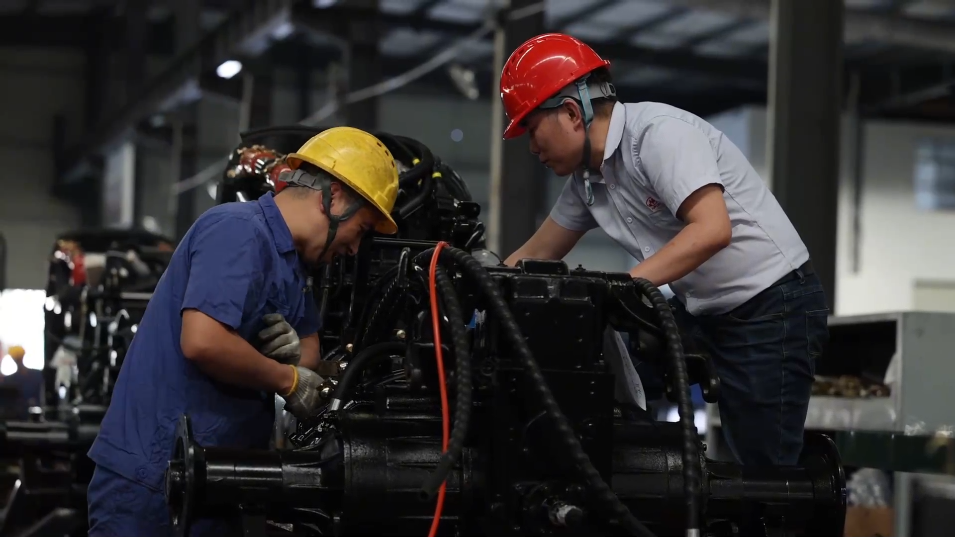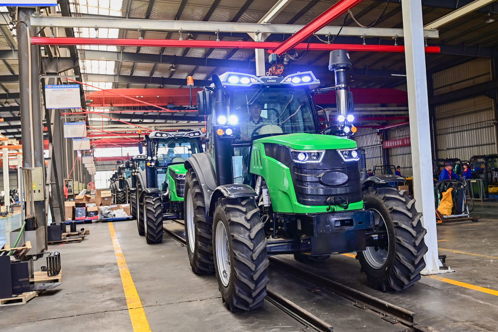 5月15日,在山東省青州經(jīng)濟(jì)開(kāi)發(fā)區(qū)一家大型農(nóng)機(jī)制造企業(yè),工人調(diào)試檢驗(yàn)出口海外的大馬力拖拉機(jī)。新華社發(fā)(王繼林 攝)