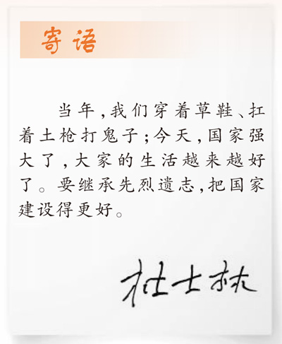 當年盼望的好日子已成為眼下的日常生活,杜士林滿心欣慰更滿懷期待,“好日子是戰(zhàn)士們用鮮血換來的。我們要保持艱苦奮斗的精神,珍惜現(xiàn)在的美好生活?!倍攀苛终f。