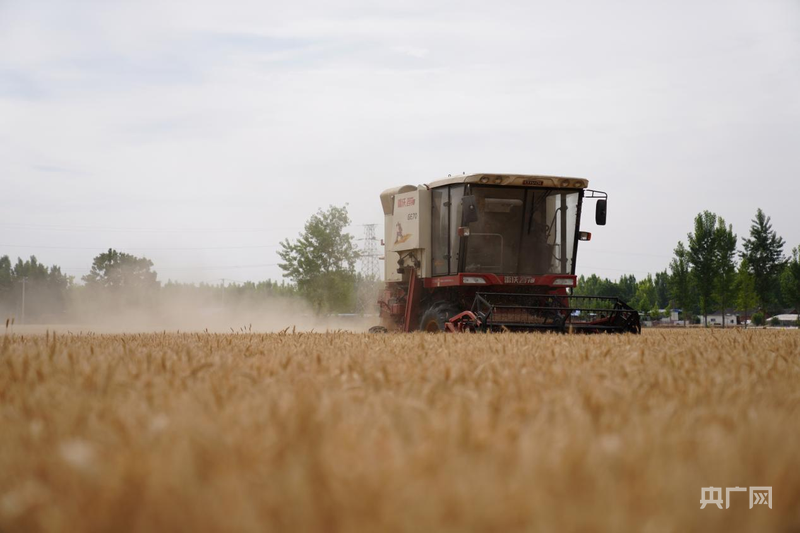種糧大戶張洪文的4臺聯(lián)合收割機開足馬力馳騁在麥田里(央廣網(wǎng)發(fā) 王建安 攝)