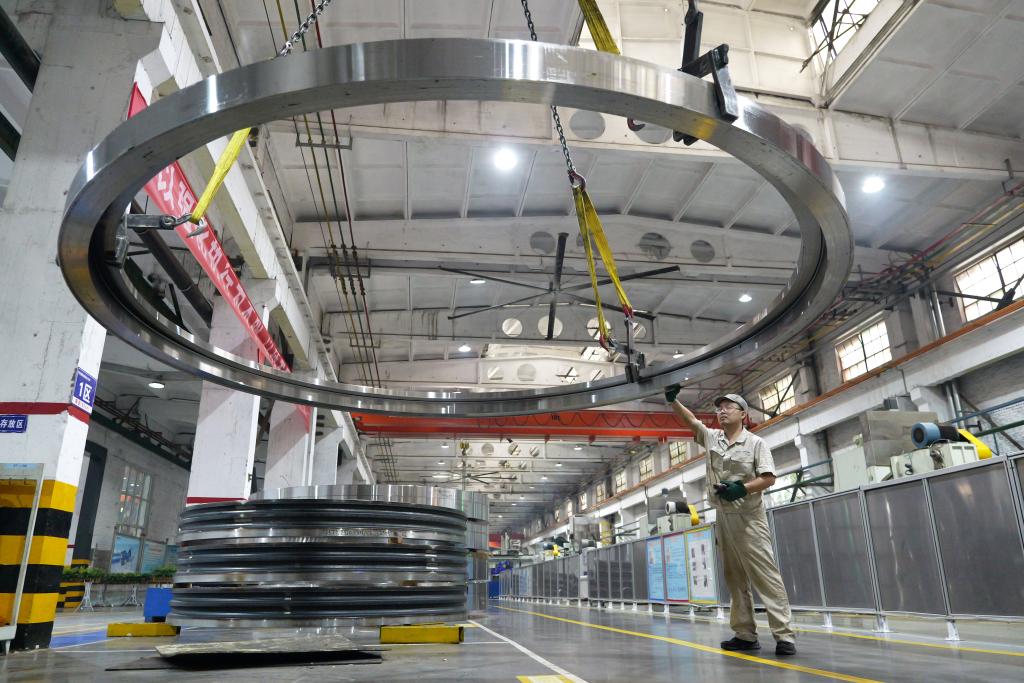 5月22日,工人在洛軸集團(tuán)風(fēng)電三車(chē)間生產(chǎn)線(xiàn)上作業(yè)。新華社記者 李嘉南 攝