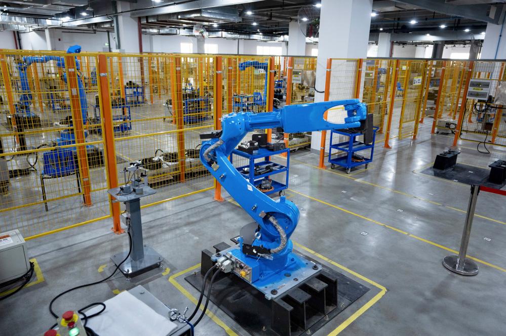 2024年11月13日,在成都卡諾普機(jī)器人技術(shù)股份有限公司,工業(yè)機(jī)器人在出廠前進(jìn)行全自動(dòng)測(cè)試。新華社記者 江宏景 攝