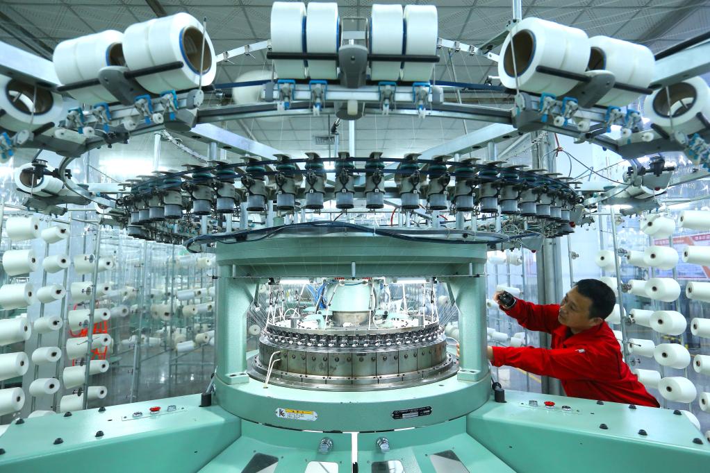 5月19日,山東省青島市即墨區(qū)龍山街道一家紡織企業(yè)的工人在生產(chǎn)出口海外市場(chǎng)的服裝面料。新華社發(fā)(梁孝鵬 攝)