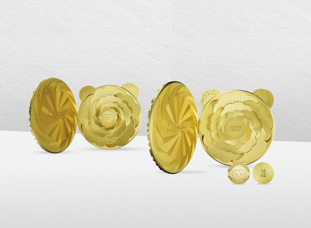 此外,“竹光”以其精巧的內(nèi)部結(jié)構(gòu)引人矚目,詮釋了“分享”的核心理念。輕輕向左翻開(kāi)獎(jiǎng)牌正面,一枚獨(dú)特的金屬質(zhì)徽章便呈現(xiàn)眼前:一面是靈動(dòng)的川金絲猴“錦仔”,另一面則由太陽(yáng)神鳥(niǎo)環(huán)繞成都世運(yùn)會(huì)會(huì)徽。