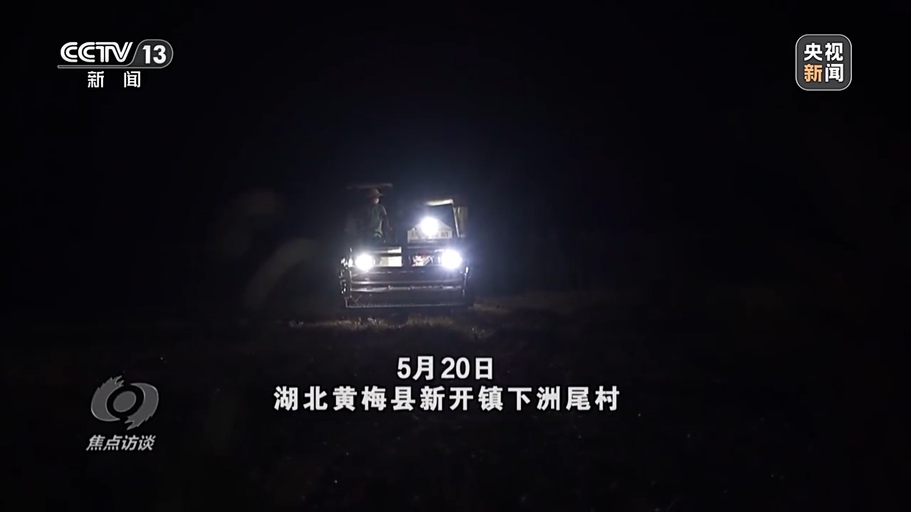 5月20日,湖北黃梅縣已經(jīng)進(jìn)入小麥?zhǔn)崭畹奈猜?,大部分農(nóng)戶已經(jīng)收割完小麥。突如其來的暴雨預(yù)警信息讓村民吳從先心急如焚:他家還有20畝小麥沒有收,只能連夜沖進(jìn)麥田開始搶收。