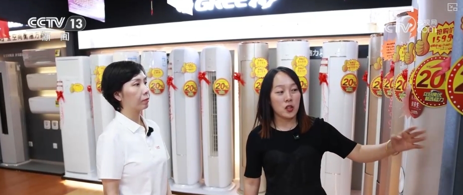 店主介紹,當前消費者“以舊換新”需求旺盛。6月份以來,店內銷售量環(huán)比增長了33%,空調、冰箱等清涼家電成為消費主力。