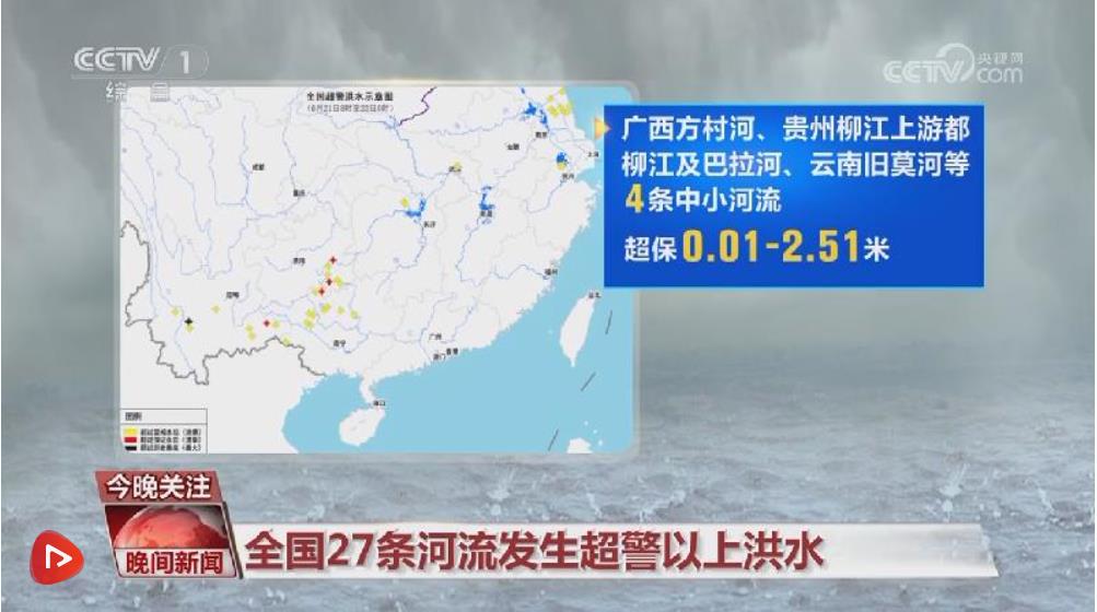水利部消息,6月21日8時(shí)至22日8時(shí),受降雨影響,廣西柳江干流及支流方村河、貴州沅江支流巴拉河、云南右江支流舊莫河及瀾滄江支流勐統(tǒng)河等27條河流發(fā)生超警以上洪水,最大超警幅度3.71米,其中廣西方村河、貴州柳江上游都柳江及巴拉河、云南舊莫河等4條中小河流超保0.01~2.51米,云南勐統(tǒng)河發(fā)生1979年以來最大洪水。此外,江蘇里下河地區(qū)新增8站水位超警0.02~0.51米。