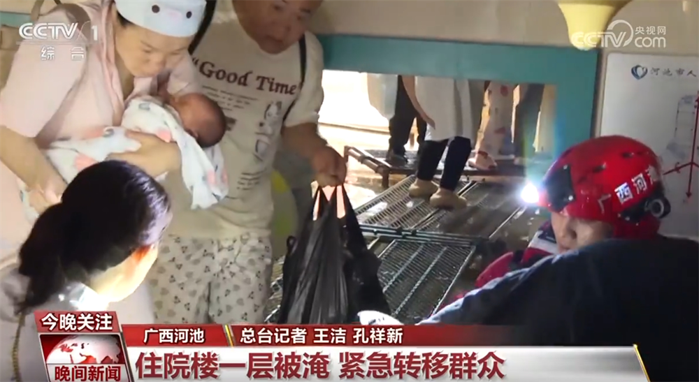 這兩天,廣西河池多地遭遇強(qiáng)降雨天氣。河池市人民醫(yī)院住院部大樓一層出現(xiàn)嚴(yán)重積水,幾百名住院的病人和陪護(hù)家屬需要轉(zhuǎn)移,救援人員迅速行動(dòng)起來。