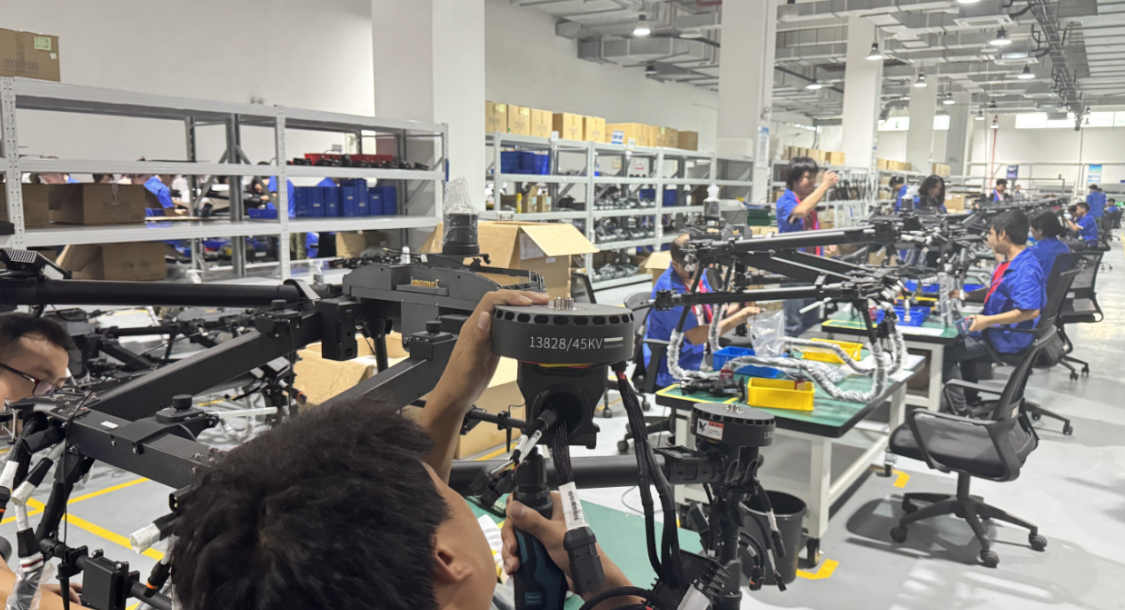 聯(lián)合飛機集團產(chǎn)線上的組裝工人正在組裝農(nóng)業(yè)無人機。陸穎 攝